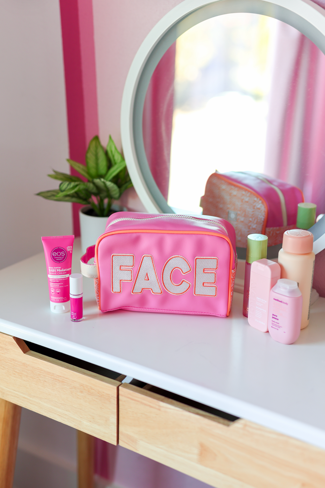Our Handle Cosmetic Bags feature a secure zippered top opening and a convenient handle on one end—perfect for travel or daily use. Each bag is beautifully finished with embroidered lettering on the side, adding a fun, personal touch. Great for organizing makeup, skincare, baby supplies and all kinds of STUFF!